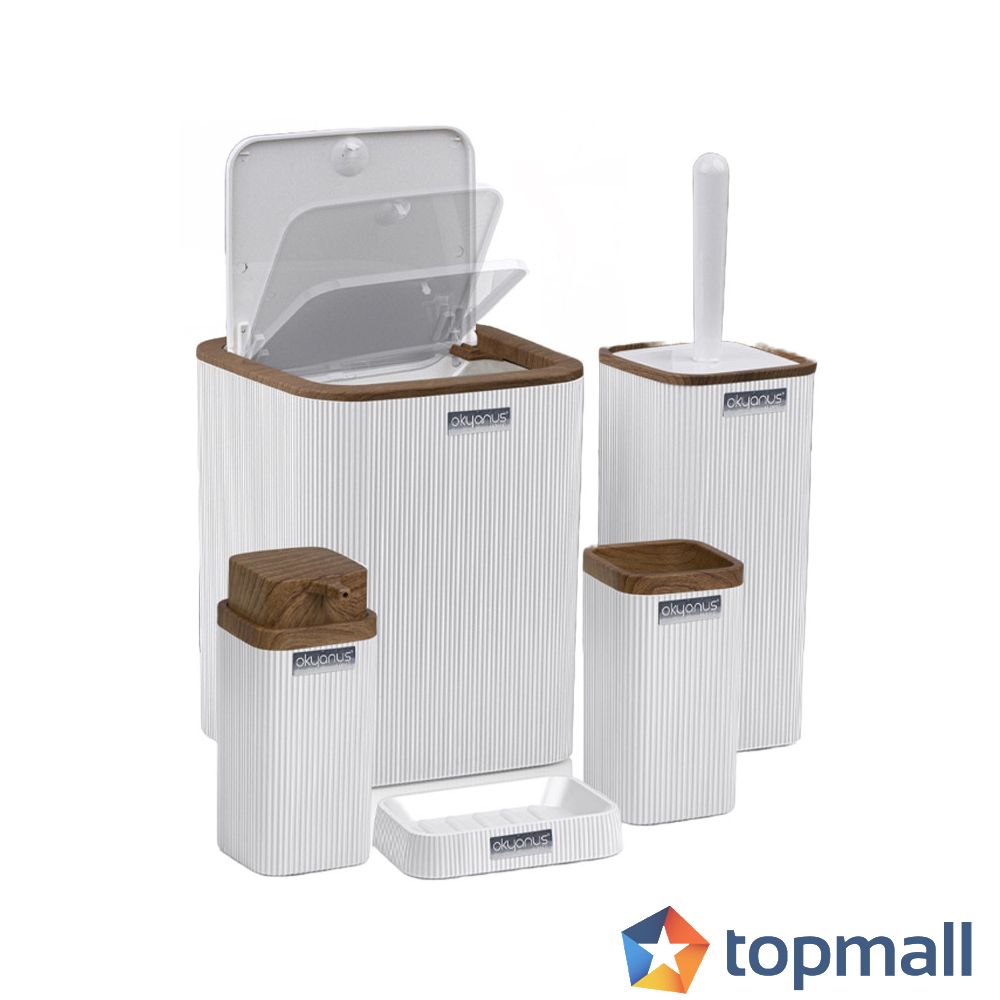 Комплект за баня от 5 части Freehome OKY-461-3-B включващ кош за боклук, четка за тоалетна, поставка за сапун, диспенсър за течен сапун и чаша