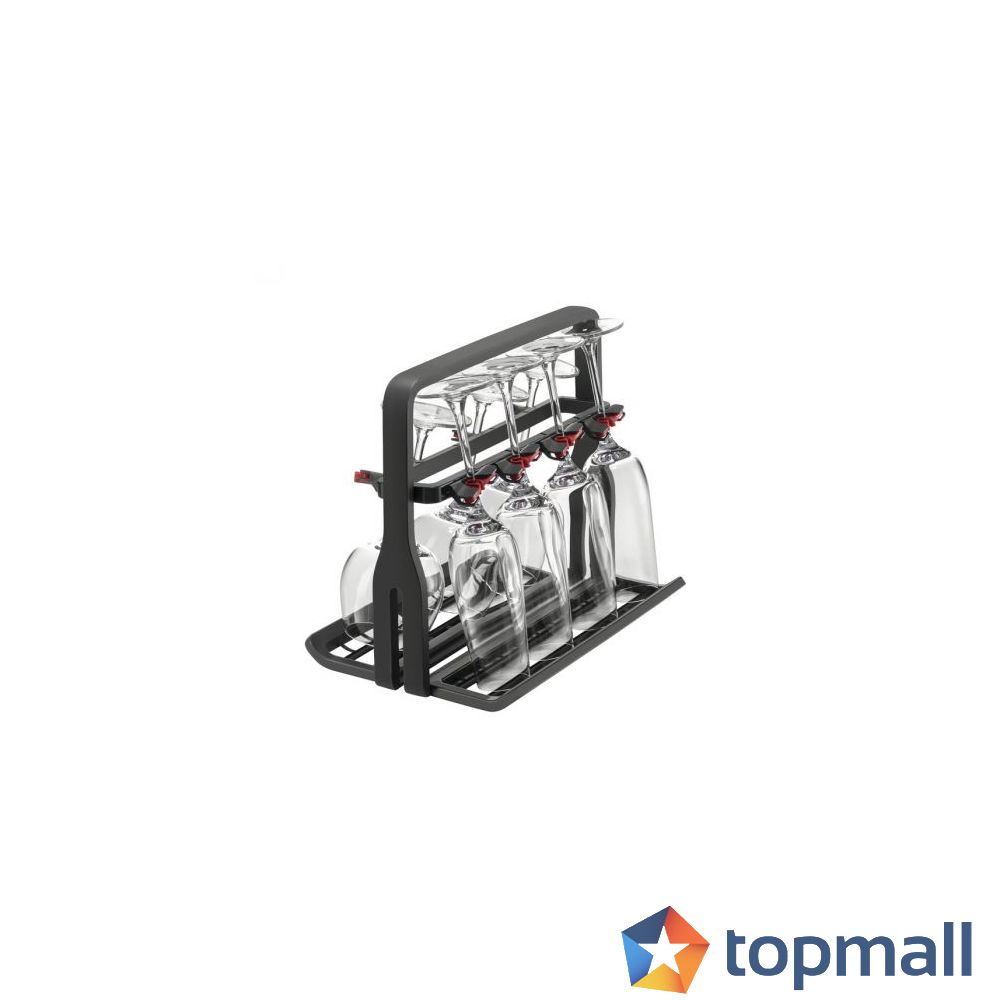 РАЦИОНАЛНО ОПОЛЗОТВОРЯВАНЕ НА ПРОСТРАНСТВОТО Кошничката Glass Basket може да поеме до 8 стъклени чаши със столче, когато е напълно разгъната. При половин разгъване - съответно 4 чаши, за да пестите място.