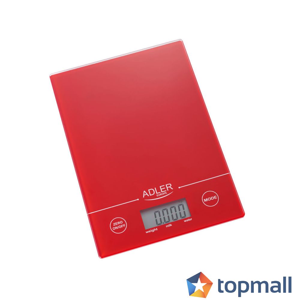 Кухненска везна Adler AD 3138r, 5 кг, LCD екран, ТАРА, Включена батерия, Червен, (12735)