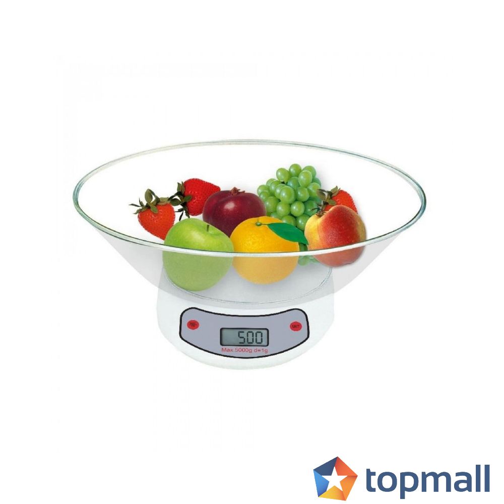Кухненска везна с купа Rosberg R51651B, До 5 кг, LCD екран, Бял, (12811)