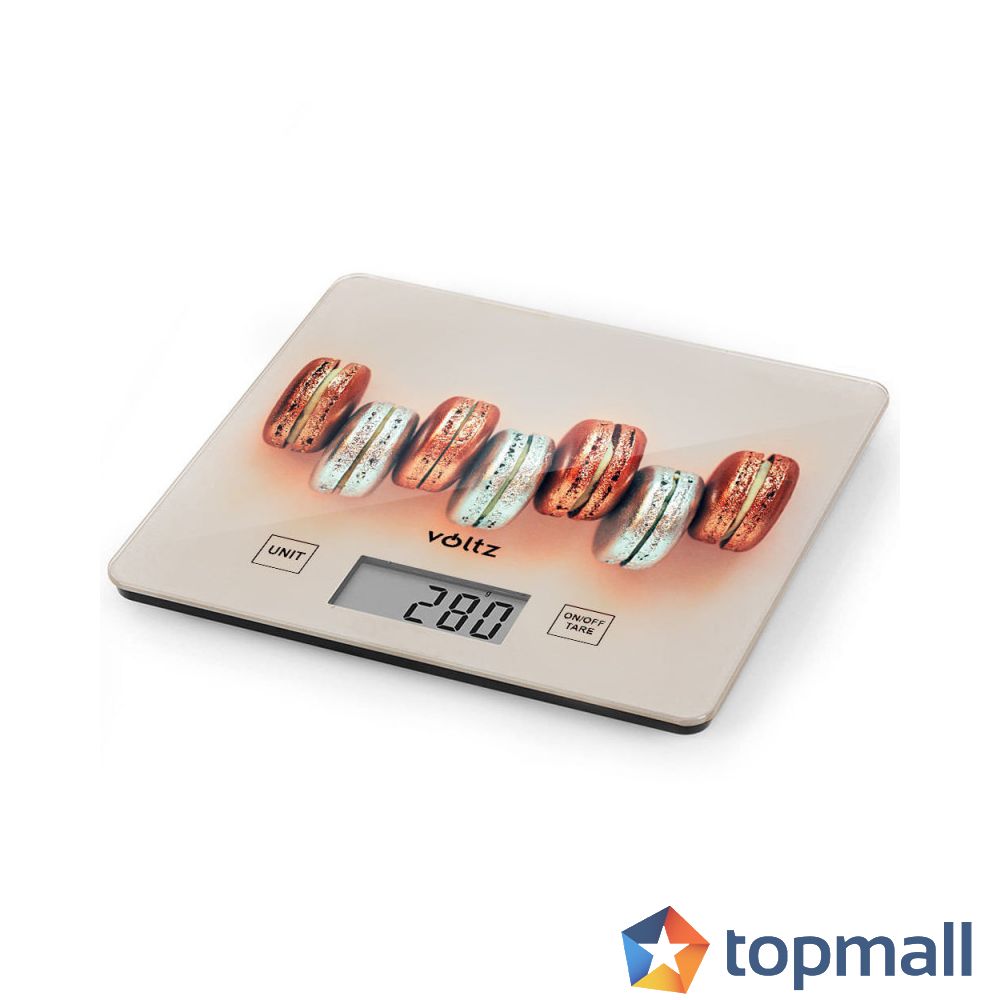 Кухненска везна Voltz V51651D Macaron, 5 кг, Стъкло, 15x15 см, Вкл. батерия, Многоцветна, (55V51651D1)