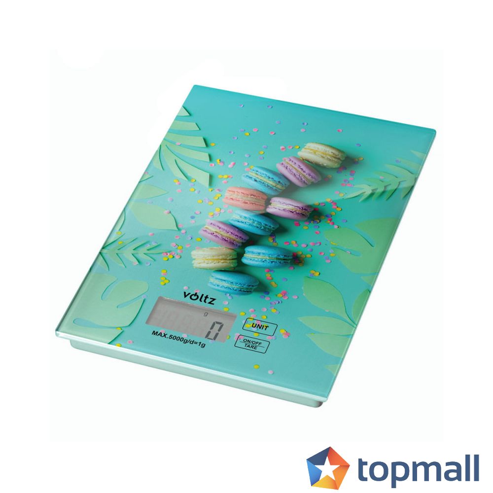 Кухненска везна Voltz V51651E Macaron, 5 кг, ТАРА, Стъклена, Син, (55V51651E3)