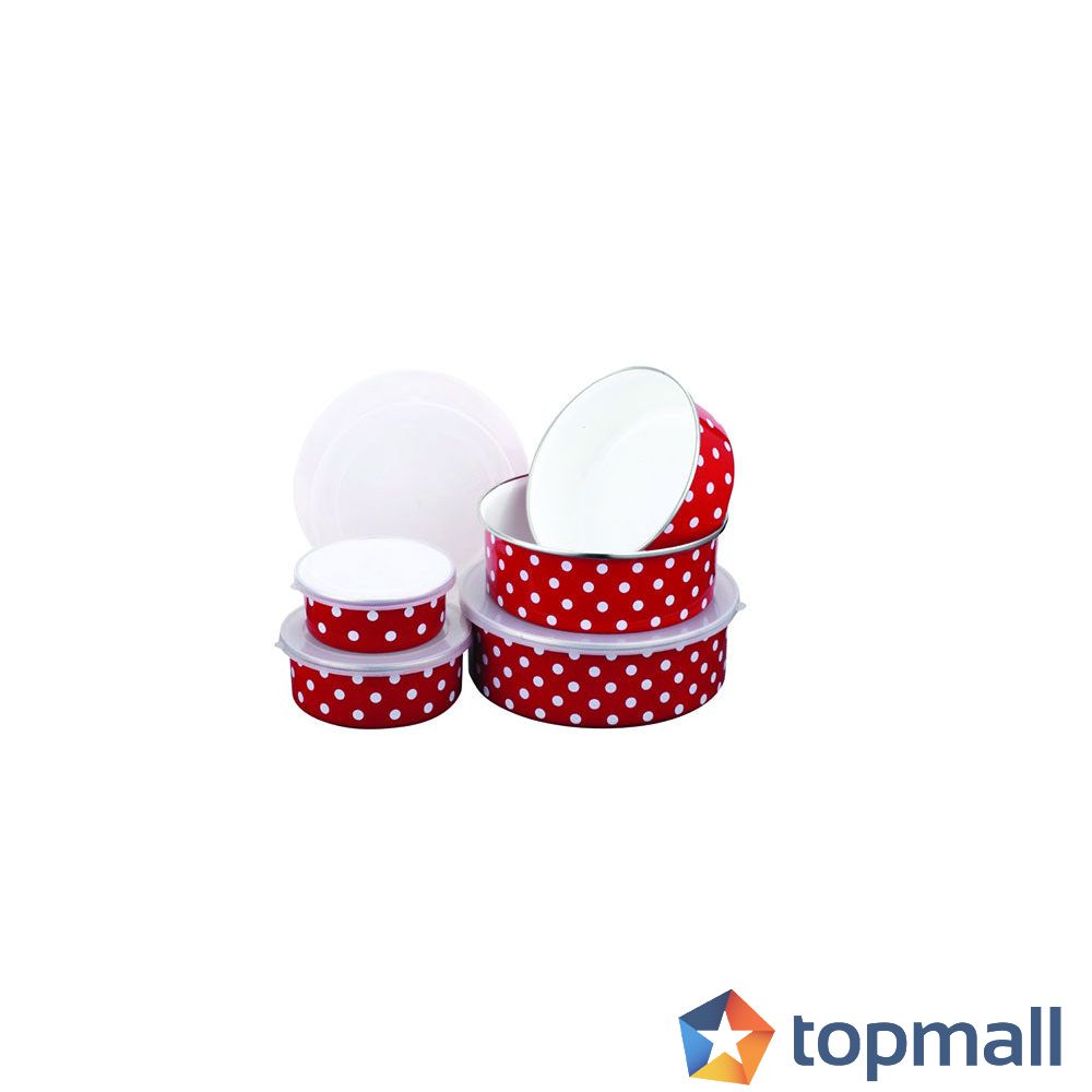 Купи за храна PETERHOF PH 12866, 5 броя, 10/12/14/16/18 см, Емайл, Червен с бели точки, (18458)