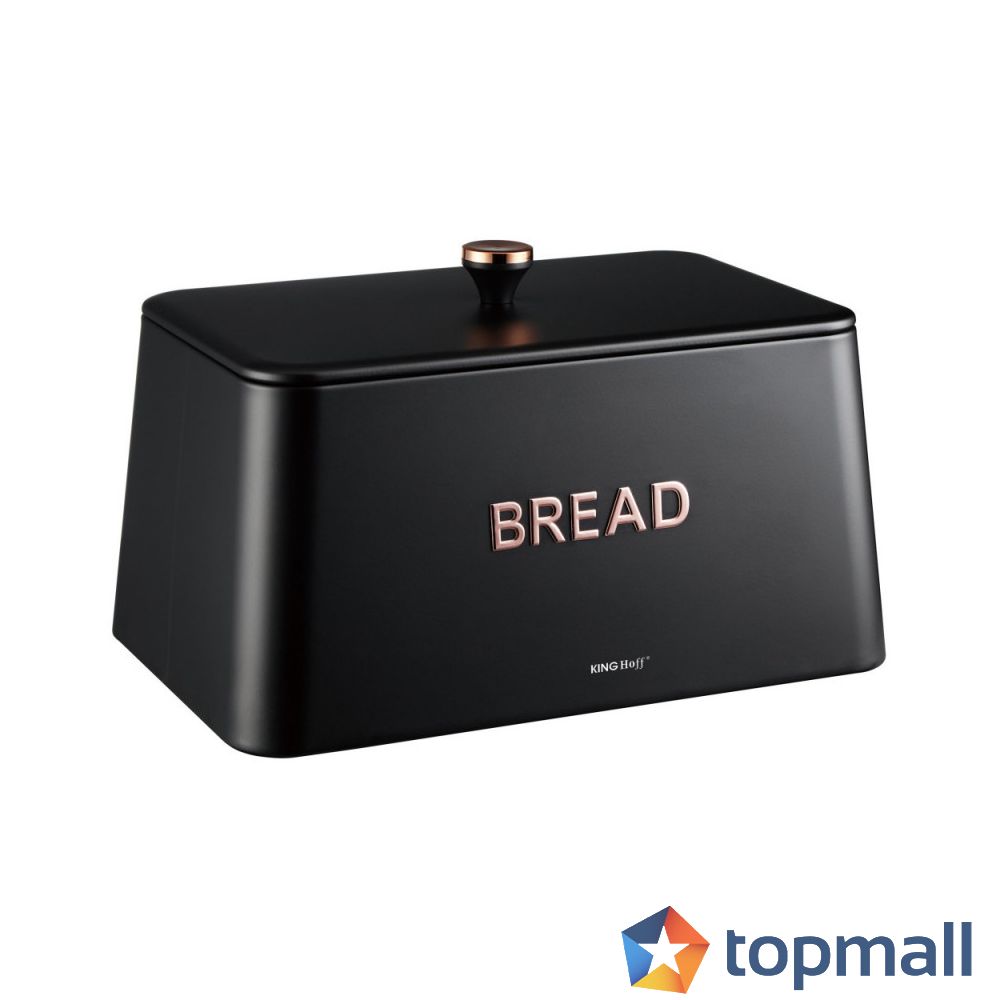 Кутия за хляб Kinghoff KH 1949, 35 см, Метално тяло, Бамбуков капак, Черен, (35945036)