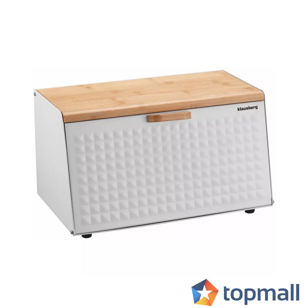 Кутия за хляб Klausberg KB 7468, 35.5 см, Стомана, Бамбук, Горен и преден капак, Бял, (35944515)