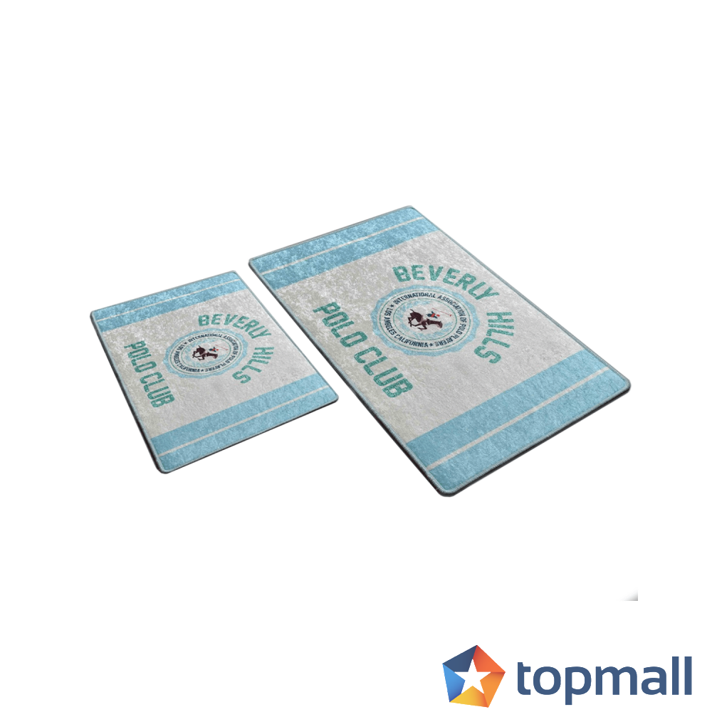 Комплект килими за баня Beverly Hills Polo Club 587BHP2101, 2 части, 60х100 см, 50х60 см, 100% кадифена тъкан, Антибактериален, Син/Бял, (587BHP2101)