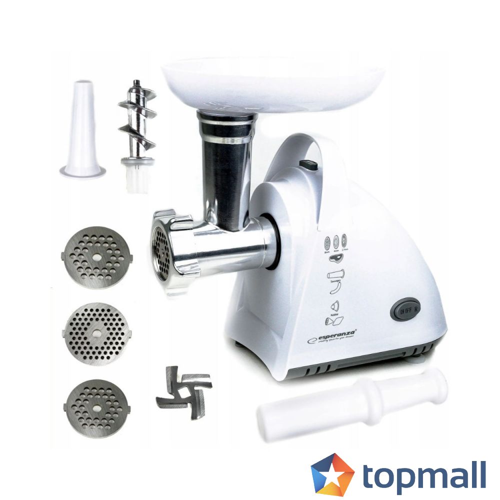 Месомелачка Esperanza EKM031, 2000W, Приставки за наденица и къббе, Обратен ход, Бял, (9999EKM031)