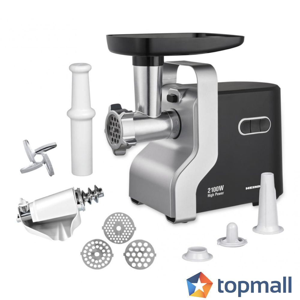 Оценете:Месомелачка HEINNER MG-2100BKSL, 2100 W, Приставка за домати, Иноксов нож, (19283)