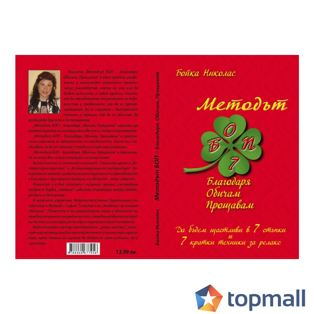 Книгата „Методът БОП – Благодаря, Обичам, Прощавам“ е едно кратко, разбираемо и максимално опростено практическо ръководство, което ни учи как да бъдем щастливи в седем кратки стъпки, как да преодоляваме вътрешното си недоволство и проблемите, как да се препрограмираме, да се справяме с болезнените спомени и травми, как да се обичаме, да разбираме другите и да прощаваме.