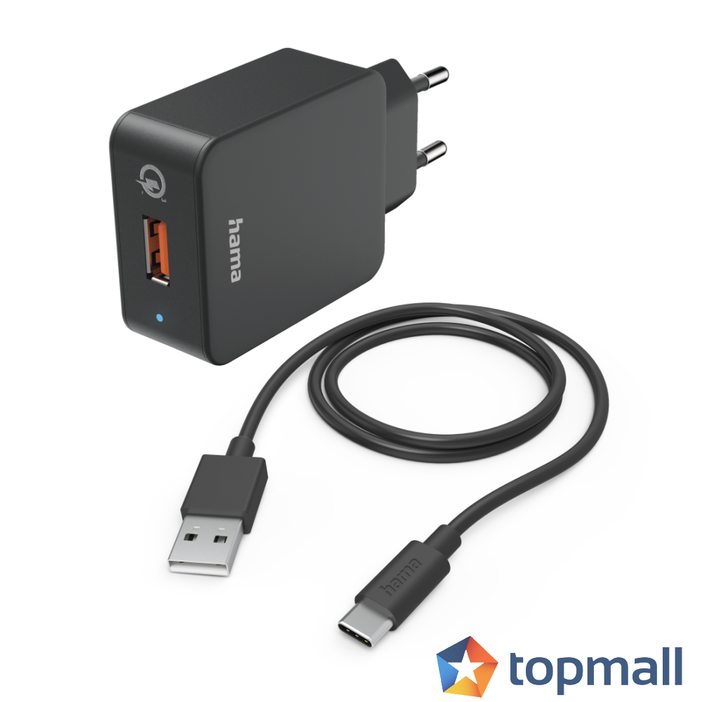 Мрежово зарядно HAMA, 220V, USB-C, Qualcomm, Quick Charge, 19.5W, Вкл. кабел, Черен, (35935739)