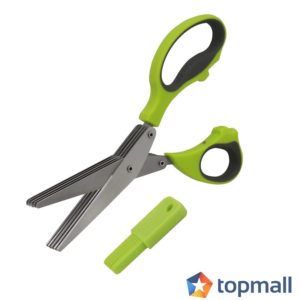 Ножица за зелени подправки Scissors KH689, 21 см, 5 двойни остриета, Четка за почистване