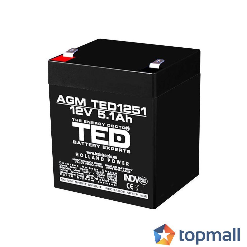 Оловна батерия TED ELECTRIC AGM, 12V, 5Ah, 90/ 70/ 10 1mm, Терминал 2, (35938286)