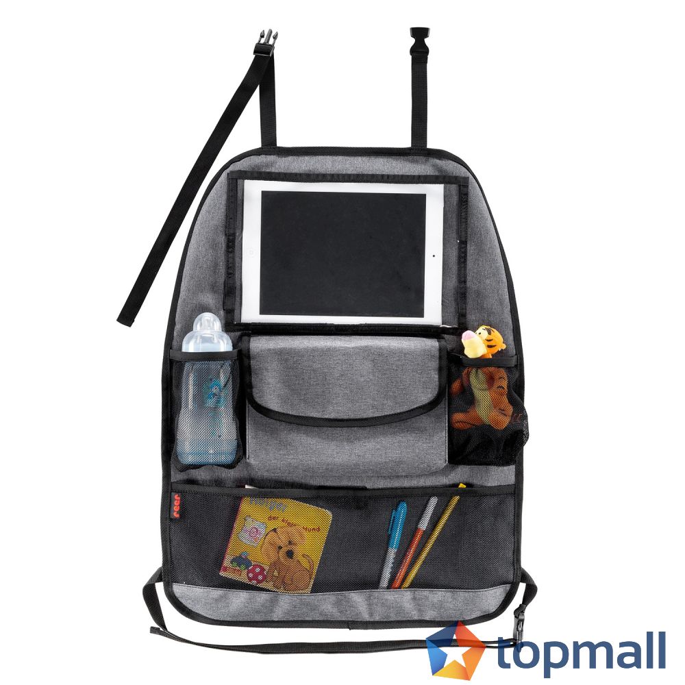 Практичният органайзер за седалка, част от серията Travel Kid на Reer осигурява максимален комфорт при дълго пътуване с кино на задната седалка. Разполага с четири отделения с различен размер, някои с велкро закопчалки. Джобът за таблет е подходящ за устройства до 12,5 инча. Сигурността на пътуващото кино е гарантирано от докосващ филм и странични отвори, които предотвратяват прегряването на устройството и позволяват включване на слушалки или кабел за зареждане.