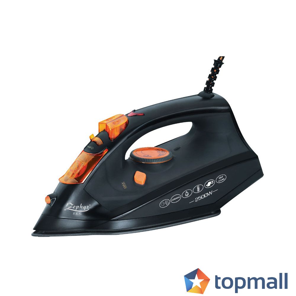 Парна ютия ZEPHYR ZP 1050 BYC, 2500W, 260 мл, Керамична плоча, Самопочистване, Вертикално гладене, Черен, (18778)