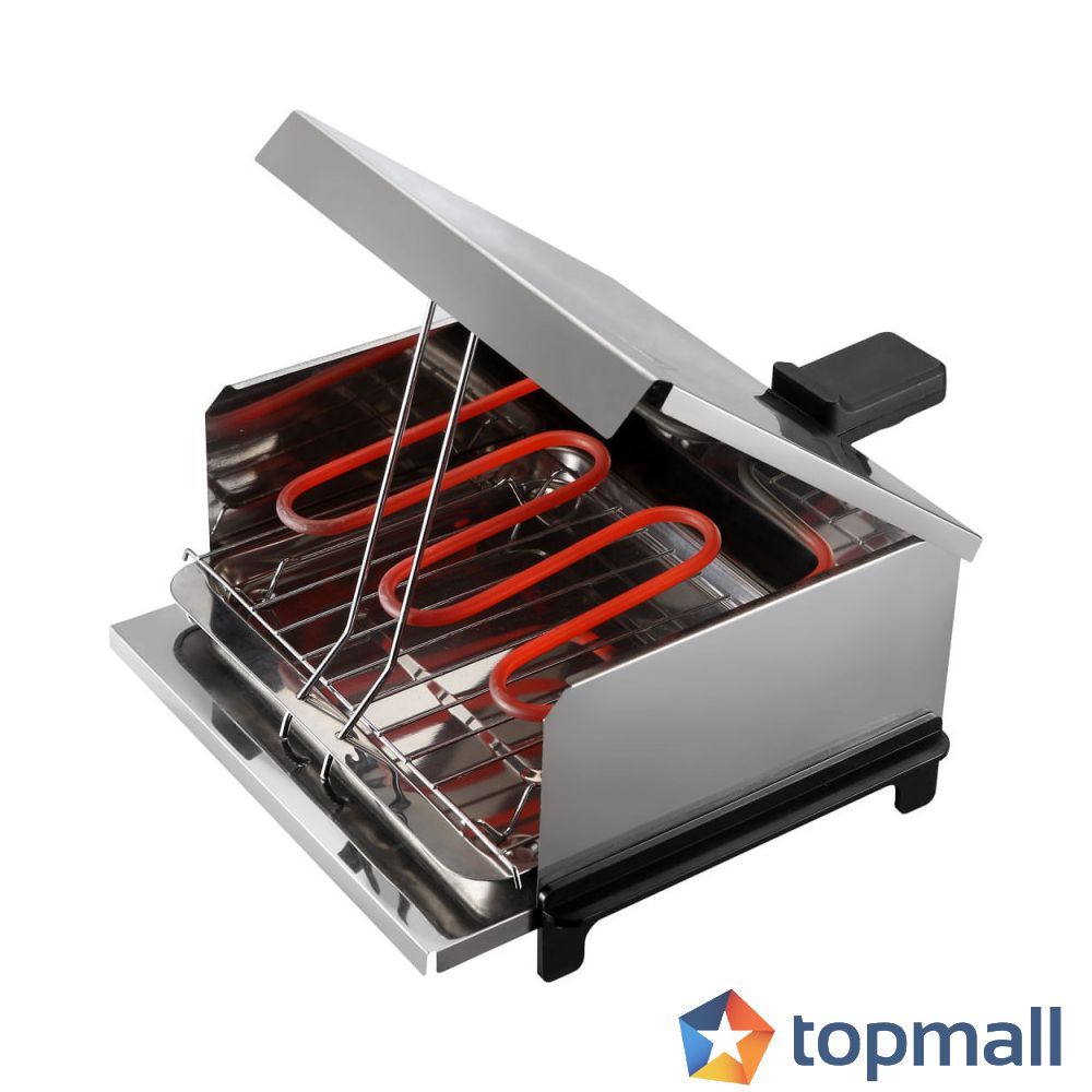 - Мощност: 800W - Захранващо напрежение: 220-240V / 50Hz - Материал: метал + пластмаса - Бързо нагряващи елементи - Метална скара за печене - Тавичка за оттичане на мазнините - Габаритни размери: 27х23х15 см