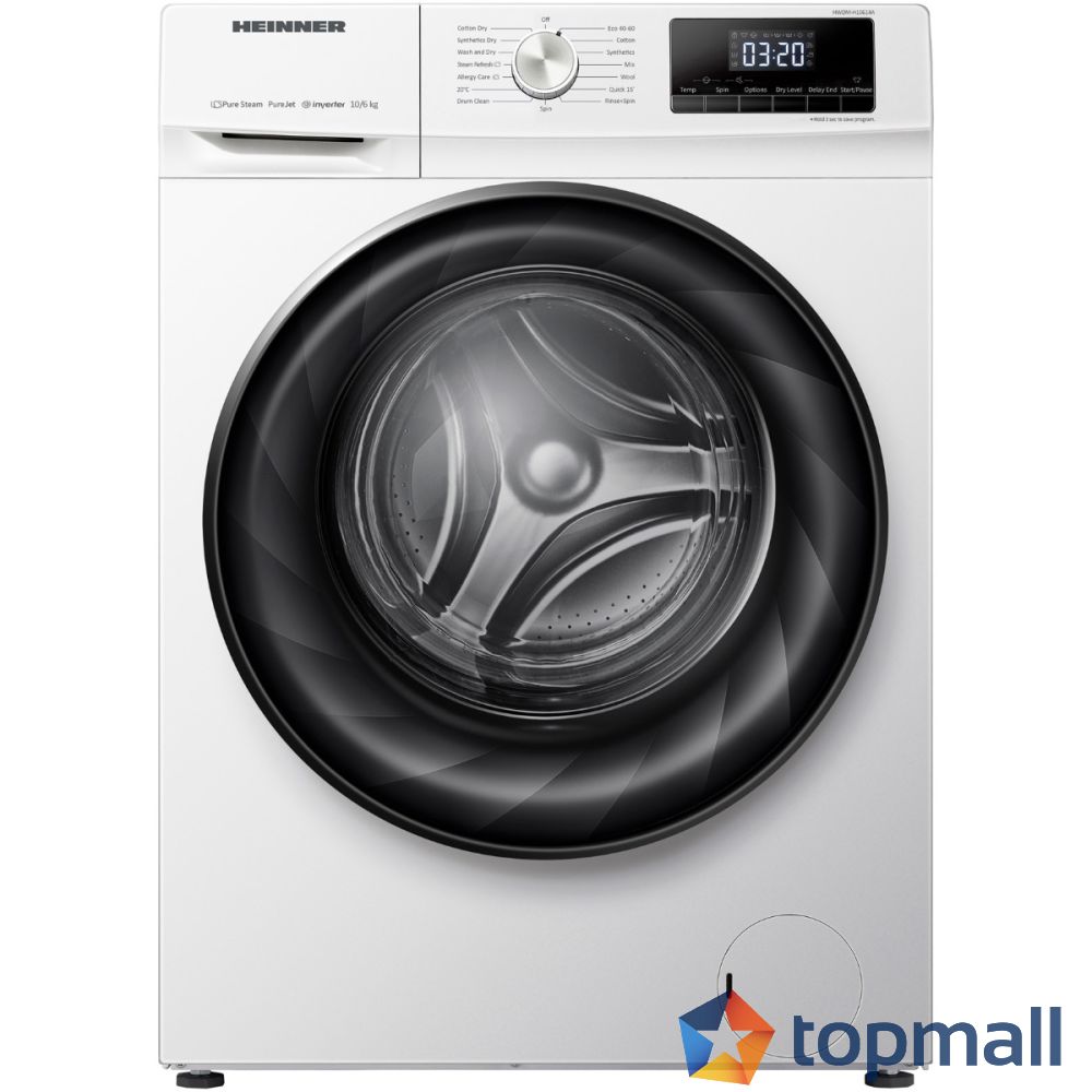 Пералня със сушилня HEINNER HWDM-H10614A, Пране 10 кг, Сушене 6 кг, 1400 об/мин, Инверторен мотор, Бял, (22432)
