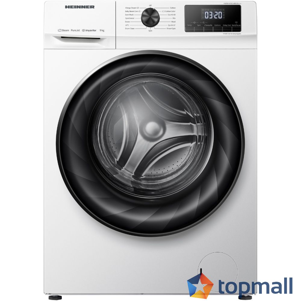 Пералня Heinner HWM-H9014INVA+++, 9 кг, 1400 об/мин, Клас А, Инверторен мотор, Дигитален дисплей, Заключване за деца, Бял, (22174)