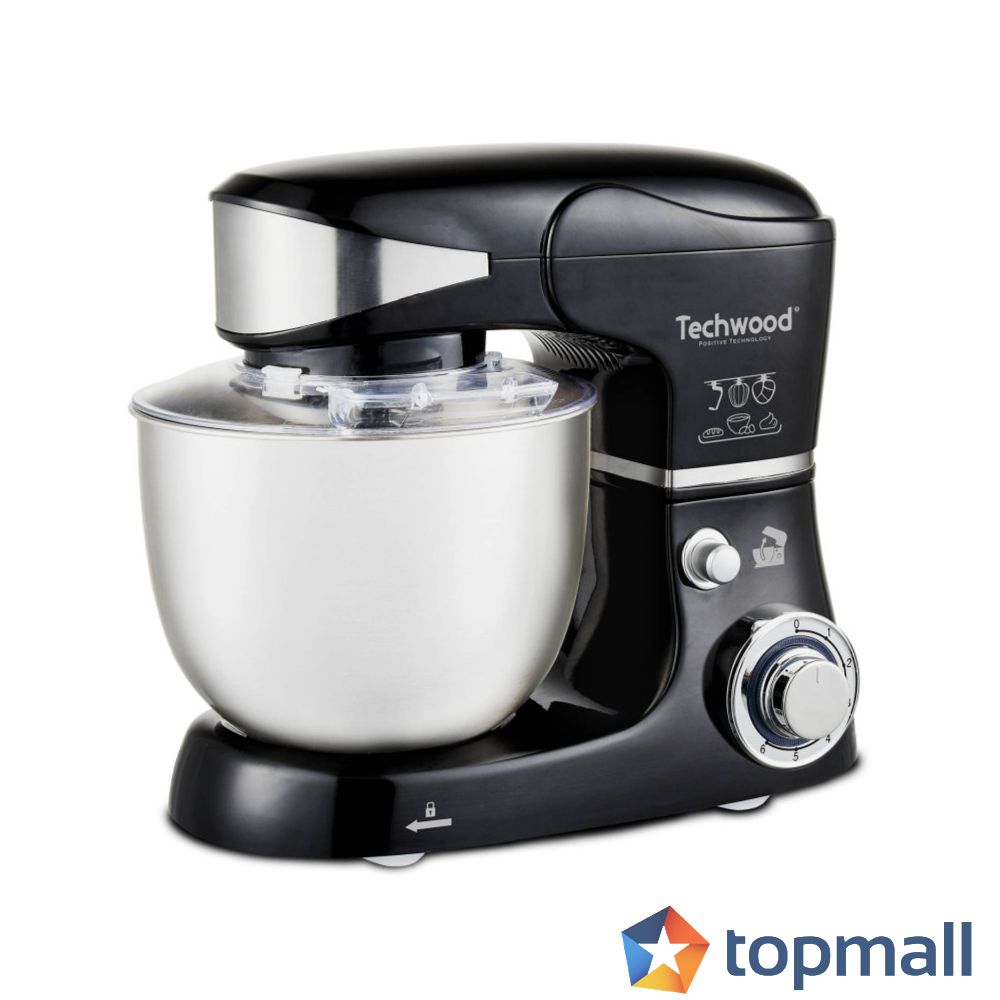 Планетарен миксер Techwood TRO-1056, 1000W, 5 литра, 6 скорости, 3 приставки, Черен/Инокс, (999TRO1056)