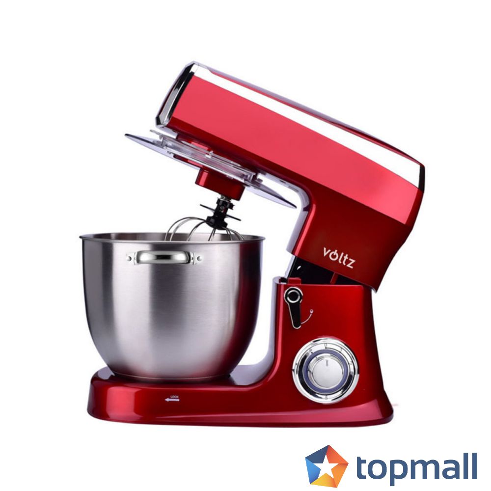 Планетарен миксер Voltz V51115A, 2100W, 7.5 литра, 6 скорости + Pulse, 3 бъркалки, Червен, (12370)