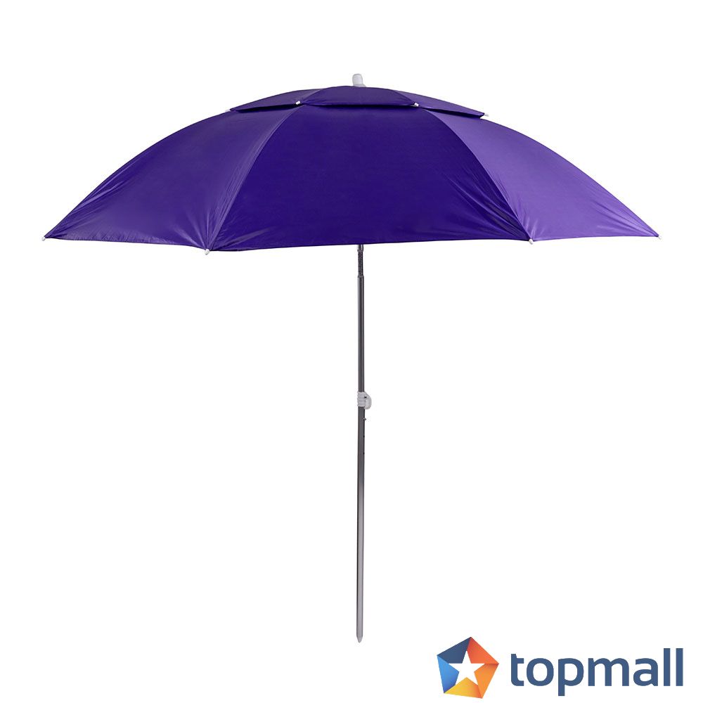 Плажен чадър Muhler YL1039 с двоен покрив Размер: 200x200 cm Материали: 22/25 mm алуминиев стълб; механизъм за накланяне изработен от стоманена тел с висока еластичност и алуминий; 5 mm ребра от фибростъкло Плат: 170T плат, UV30+ защита Торба за съхранение