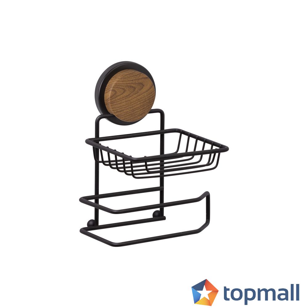 Поставка за тоалетна хартия с две отделения Metalife MGS-714W, 28x8х14 см, Черен/Дървесен, (20712)