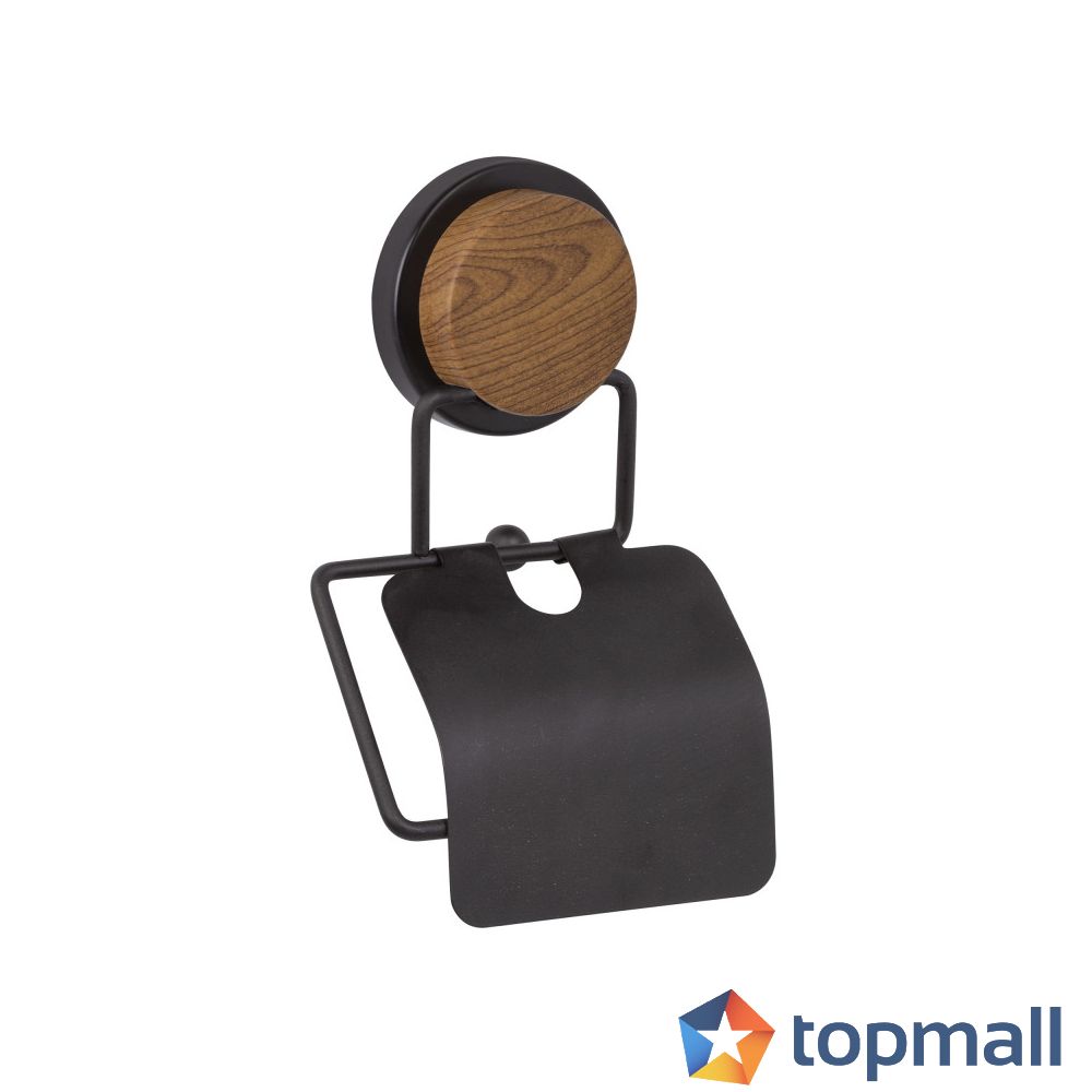 Поставка за тоалетна хартия с капак Metalife MGS-712W, 8х12х17 см, Черен/Дървесен, (20719)