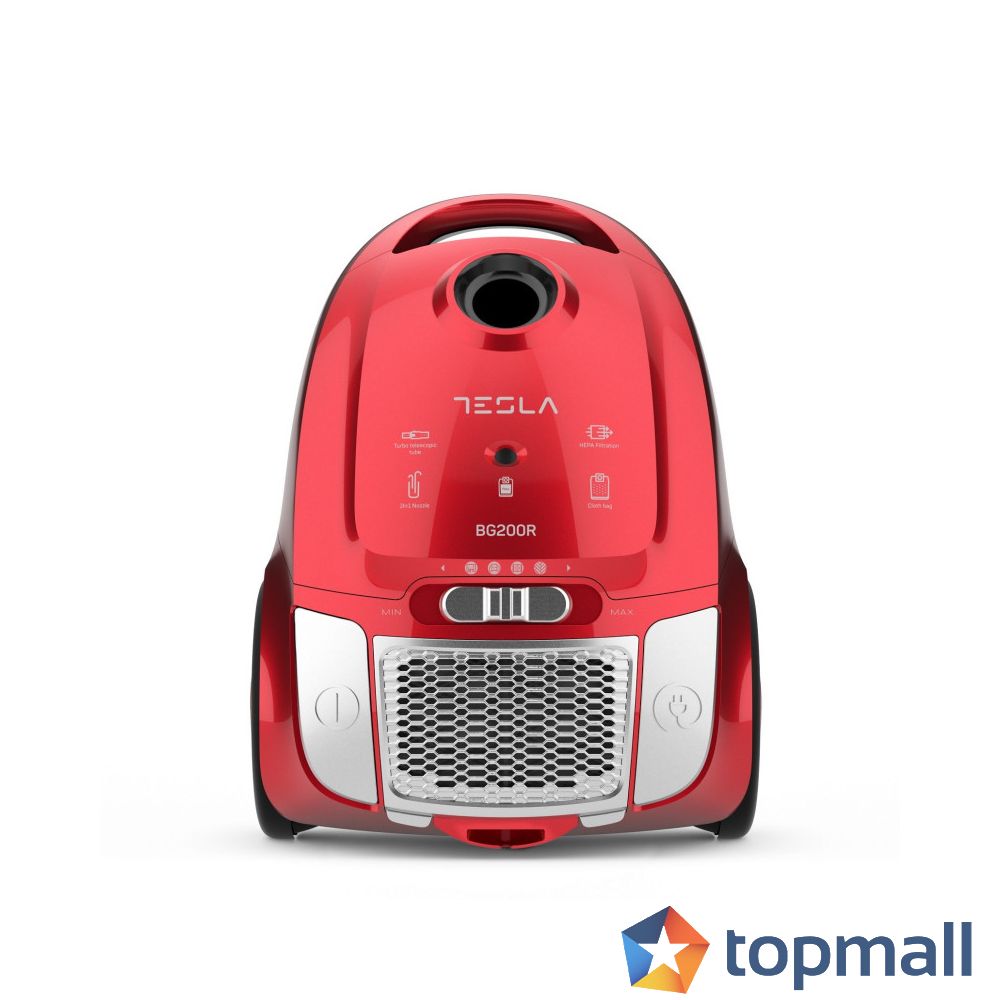 Прахосмукачка с торба Tesla BG200R, 800W, 2 литра, HEPA миещ се филтър, 76 dB, Червен, (12639)