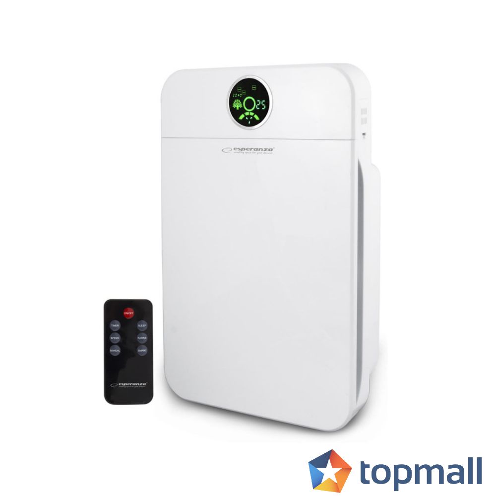 Пречиствател на въздух Esperanza EHP002, 35W, 50 кв/м, 4 етапа на филтриране, HEPA филтър, LCD екран, Таймер, Дистанционно, Бял, (9999EHP002)