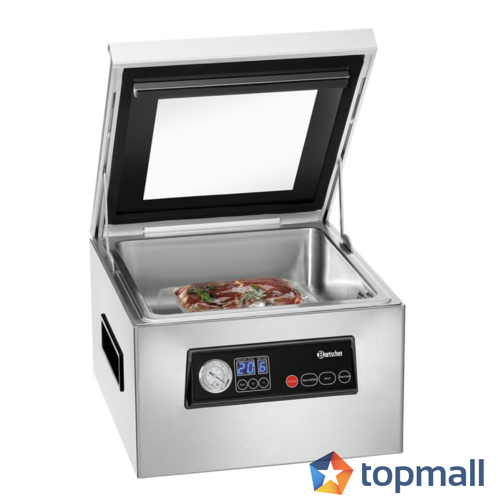 Bartscher професионална камерна машина за вакуумиране. С този модел ще запазвате за по-дълго време хранителни продукти като риба, месо, зеленчуци и плодове. Машината за вакуумиране може да запечатва пликове и ролки с максимална ширина до 30 см