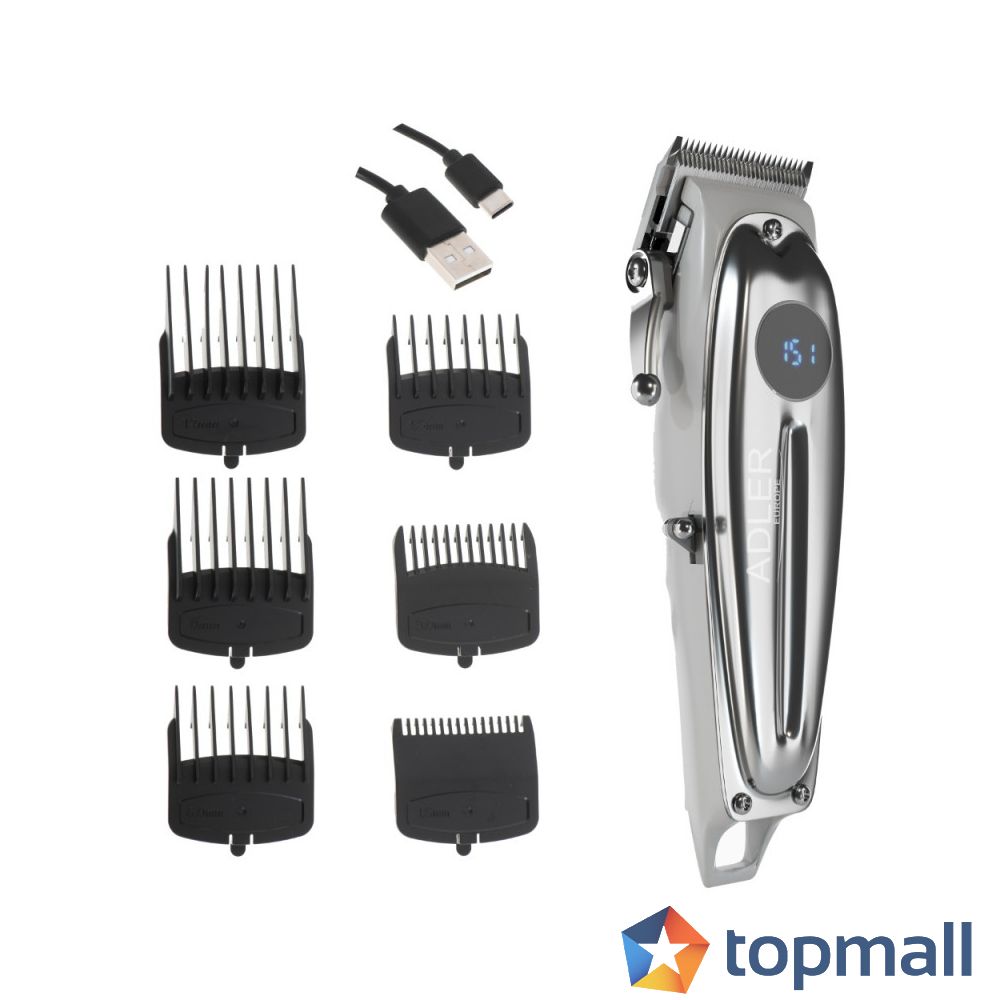 Професионална машинка за подстригване Adler AD 2831, 100W, Батерия 2200 mAh, 6 приставки, USB, LCD дисплей, Сребрист, (13009)
