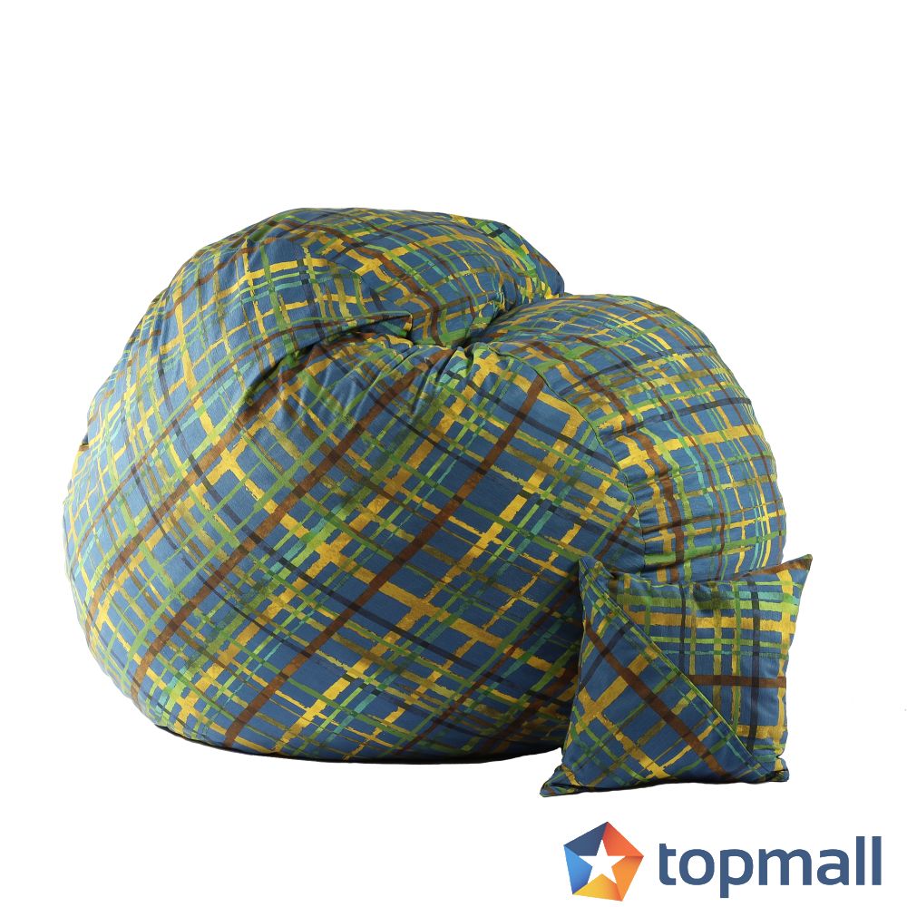 Пуф Pufrelax, Комплект барбарон, и декоративна възглавница Размер L, King Size - Day in the park, Перящ се текстилен калъф, Трансформира се в легло, Пълнеж с микс от мемори пяна и дунапрен, Гама Premium