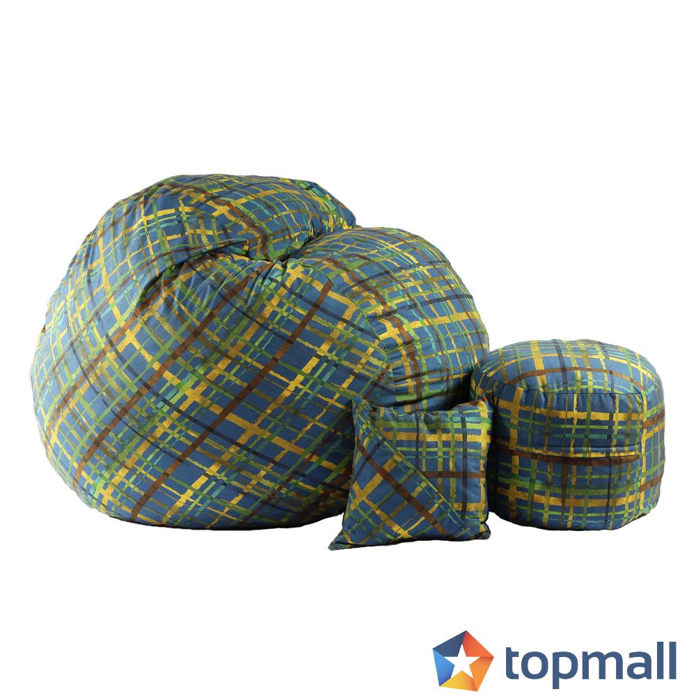 Пуф Pufrelax, Комплект барбарон, с табуретка за крака и декоративна възглавница Размер XL, King Size - Day in the park, Перящ се текстилен калъф, Трансформира се в легло, Пълнеж с микс от мемори пяна, Гама Premium