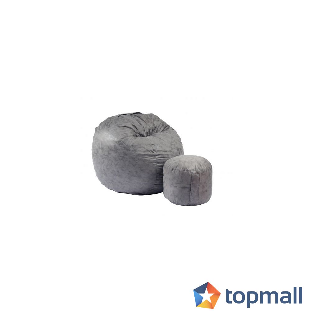 Комплект, Барбарон и табуретка за крака, 700л., King Size - Smoke Grey, Перящ се калъф, Трансформира се в легло, Пълнеж с микс от мемори пяна и дунапрен, Гама Premium