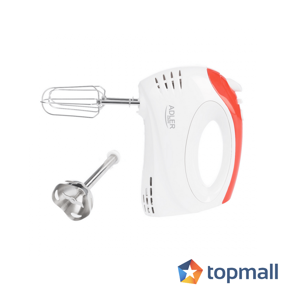 Ръчен миксер с пасатор Adler AD 4212, 300W, 5 степени, 4 бъркалки, Бял/червен, (12739)