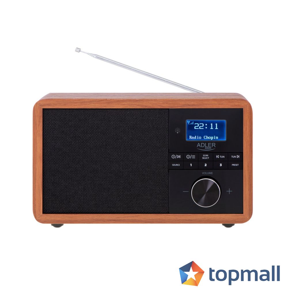 Оценете:Радио цифрово Adler AD 1184, 15W, DAB+Bluethooth, Часовник, USB, SD карта, LCD дисплей, Кафяв/Черен, (9999AD1184)