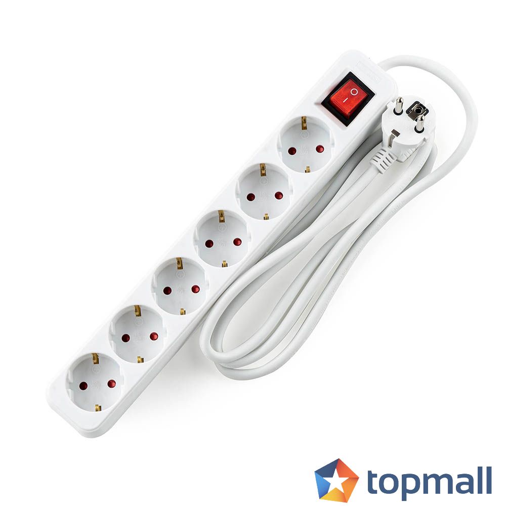 Разклонител с ключ 6 гн., Кабел: H05VV-F 3x1.5mm, 1.5 m Напрежение: 16A 230V~, Max. 3680W , IP20 Гнезда под ъгъл 45 градуса С детска защита