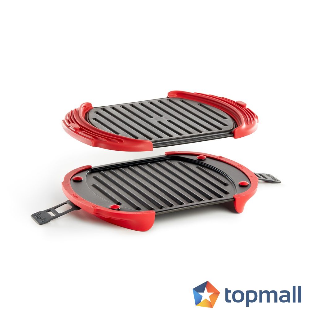 Идеален размер за порция за 3-4 души: 27x20.7xH4.4cm. Постига се хрупкава коричка при приготвянето на месо, зеленцучи, сандвичи, пици и други и то бързо - така както само микровълновата фурна може. Подходящ за гриловане на различни видове храни бързо, чисто и вкусно, като освен това готвите и полезно, защото вкусовите качества и хранителните вещества се запазват. Температурата не надхвърля 240°C, така че не се насищат всички полезни мазнини. Подходящ за почистване в съдомиялна машина или на ръка и за употреба в микровълнова (използвайте само във фурни с въртяща се чиния с минимален диаметър 28cm). Устойчивост на температури в диапазона 0°C / +240°C. Дръжки и обръчи, изработени от 100% платитен силикон; плочи - от стомана с незалепващо покритие. Гаранция за физически лица: 2 години