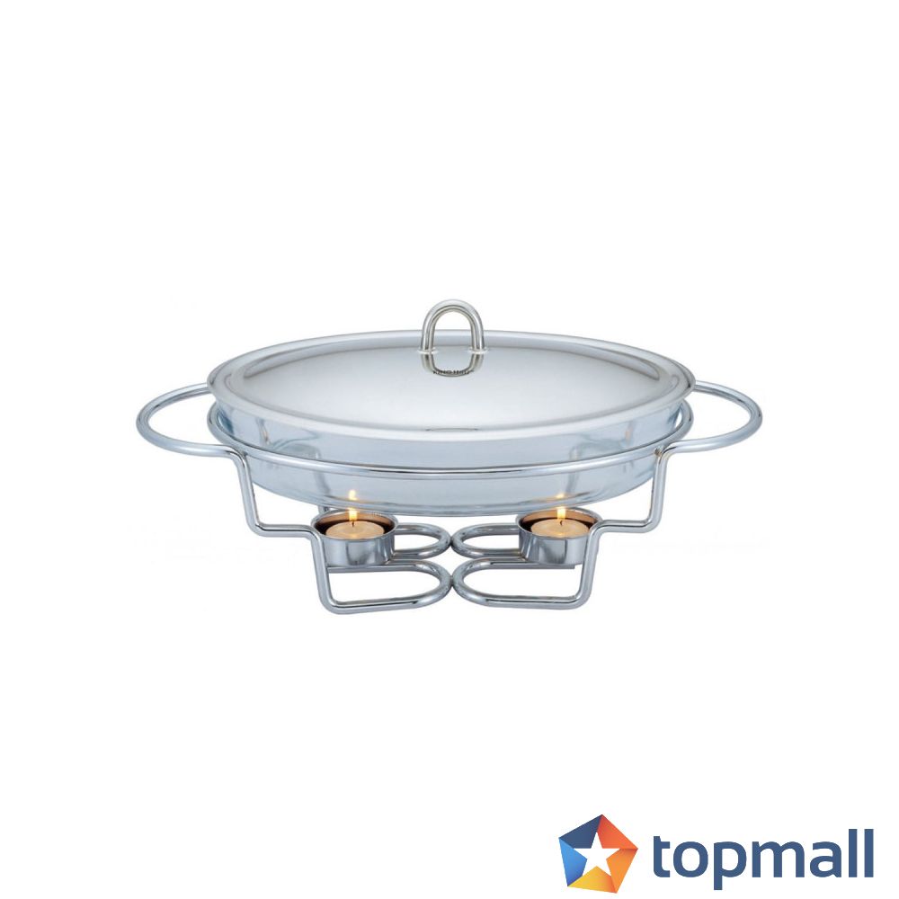 Стъклен cъд зa топло сервиране Kinghoff  KH 1411 - Oвален - Закалено стъкло, произвeдено във Франция - Sabinex - Капак и рамка от висококачествена неръждаема стомана - Включени свещи в комплекта - Подходящ за съдомиялни машини - Идеален за поддържане на топла храна между сервирането на различните ястия - Размер: 45.5 х 26 х 17 см. - Тегло: 3.7 кг. - Капацитет 3.0 литра. Специалната овална форма разпределя топлината оптимално до всяка една част на съда, за да може храната да е с подходящата за консумация температура.  Този съд е необходим и полезен аксесоар за всяка кухня и е идеалният подарък за всяка добра домакиня.