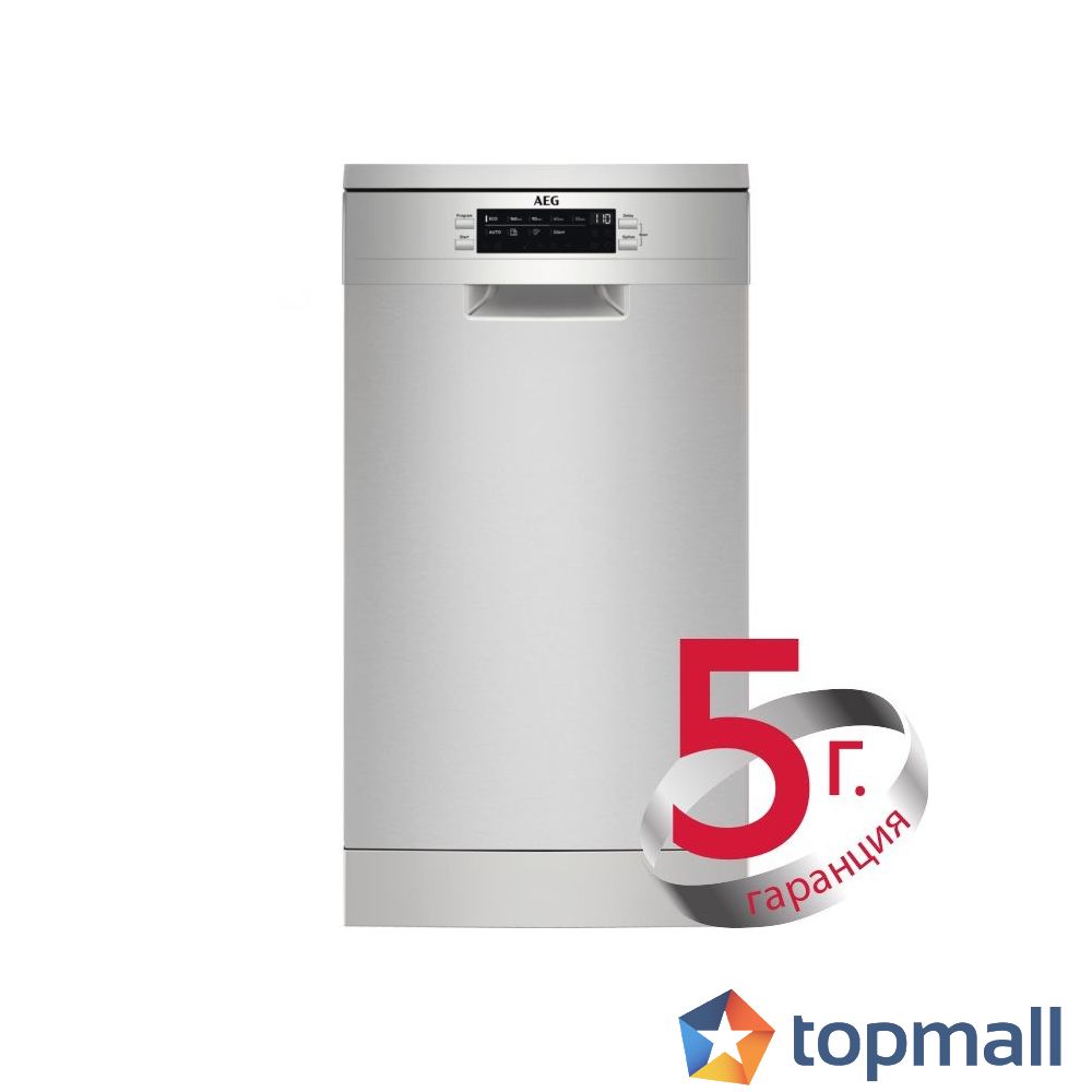 Тясна съдомиялна 45 см. AEG FFB62427ZM Технология AirDry С три пъти по-добро покритие на разпръскване SatelliteClean® достига всеки ъгъл. Дори силно замърсените големи съдове получават почистване от ъгъл до ъгъл със SatelliteClean®. Иновативното разпръскващо рамо гарантира, че водата достига навсякъде. За дълбоко почистване с до три пъти по-добро покритие на струята, то осигурява зашеметяващи резултати на почистване на всяка повърхност.