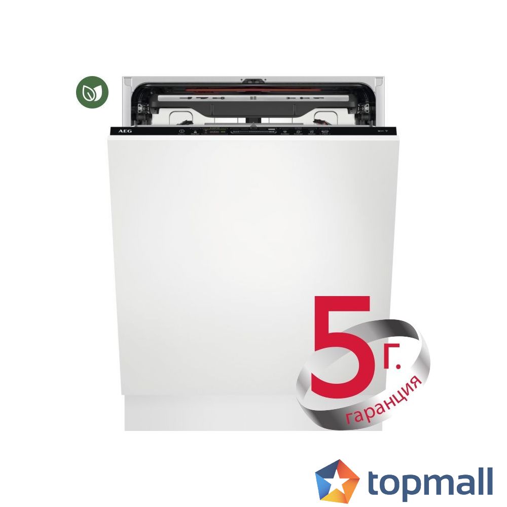 Съдомиялна за вграждане 60 см. AEG FSK75778P Технология AirDry Деликатните чаши са в добри ръце с тази съдомиялна машина Дори мощните съдомиялни машини трябва да са внимателни към стъклените чаши. За щастие горната кошница в тази съдомиялна машина има 7000 SoftGrips и SoftSpikes, които здраво придържат чашите Ви, за да не се надраскат или счупят. Идеално почистване и грижа за чашите Можете да миете в миялната и най- деликатните чаши, благодарение на приставките SoftGrip и SoftSpikes, които захващат едновременно здраво и нежно чашите и ги предпазват от удряне една в друга и счупване. Прибори с различни размери са почистени в един цикъл с MaxiFlex. Отделението MaxiFlex е проектирано да побере посуда с най-различни размери и форма. Гъвкавите разделители и максималната дълбочина означават, че всеки прибор намира своето място. Всичко се зарежда лесно и се почиства наведнъж. Лесният начин за отговорно миене на съдове Отговорният избор става лесен. Използвайте плъзгача на сензорния дисплей QuickSelect, за да изберете предпочитаната от Вас продължителност на програмата и екометърът ще Ви насочи към най-устойчивата програма за пестене на енергия и вода чрез интуитивни зелени ленти. QuickSelect с Wi-Fi: Интелигентно миене на съдове от разстояние Нашите съдомиялни с QuickSelect позволяват интелигентно и интуитивно миене на съдове. Получете указания за точната програма въз основа на заредените съдове и нивото на замърсяване. Планирайте миенето за по-голяма икономия на енергия. Приложението дава препоръки за по-екологична употреба. SatelliteClean® предоставя три пъти по-добро покритие на водата за пълно почистване. Насладете се на безупречно измиване със SatelliteClean®. Това разпръскващо рамо има три пъти по-добро покритие на водата от стандартното, тъй като въртящото се рамо разпръсква водата непрекъснато под променлив ъгъл с гаранция за идеално покритие на водната струя и перфектно измита посуда.