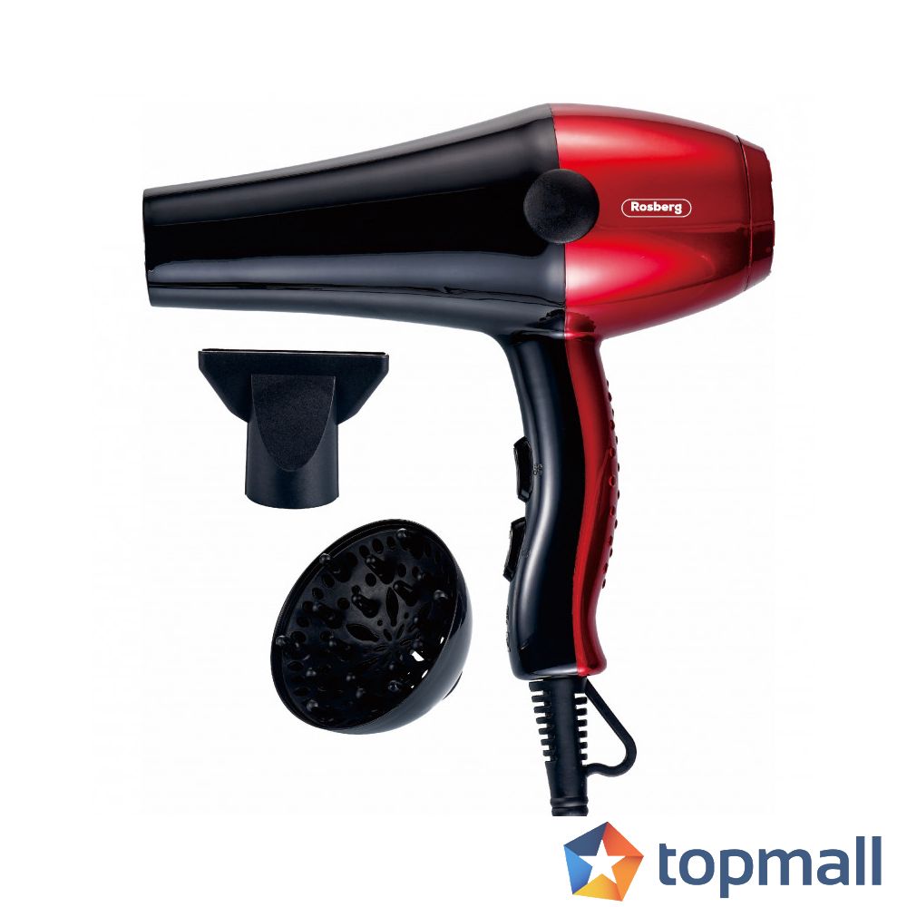 Оценете:Сешоар с дифузер Rosberg R51100SD, 2000W, 3 темп. настройки, 2 скорости, DC мотор, Черен/червен, (35945732)