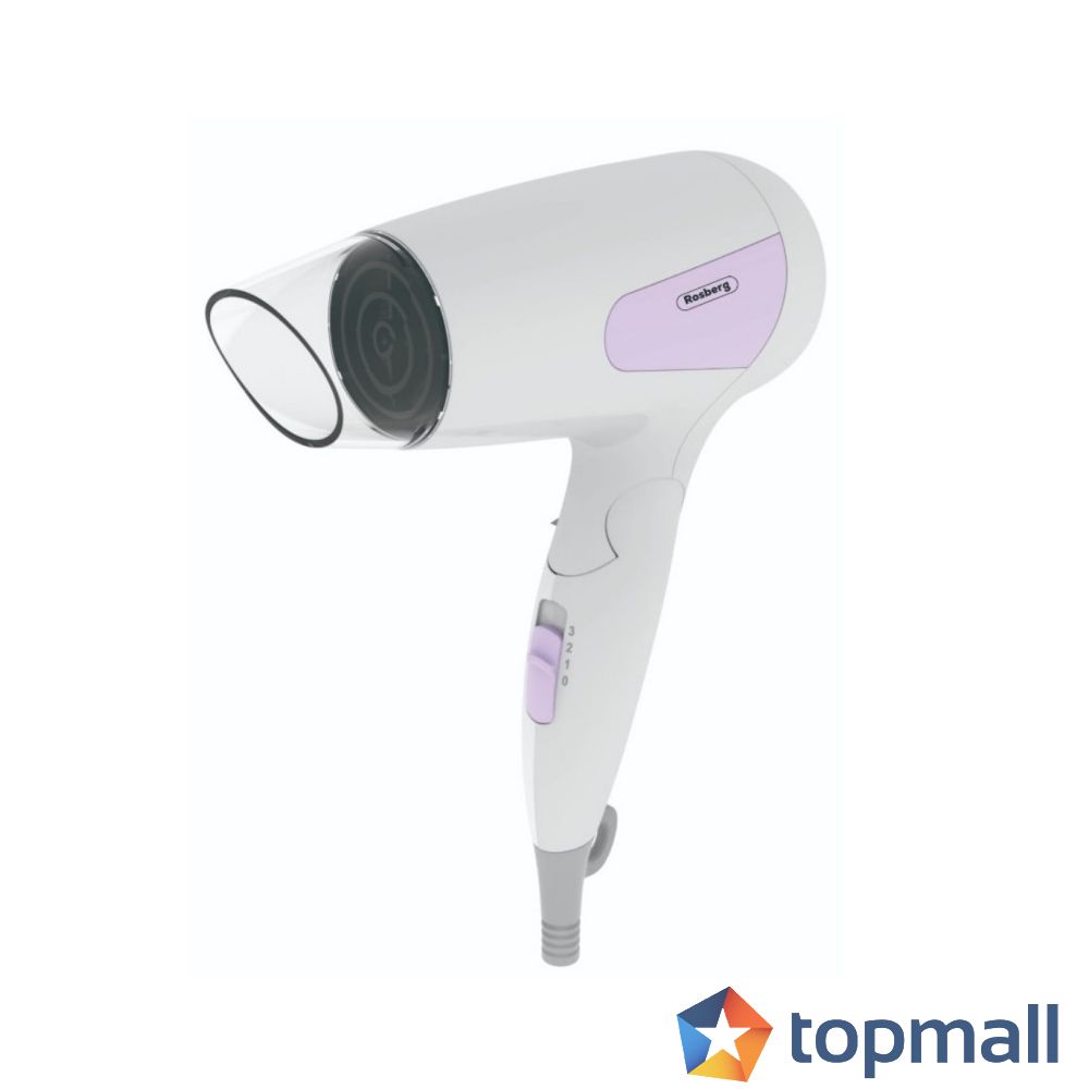 Сешоар туристически Rosberg R51100N, 1200W, Сгъваема дръжка, 3 нива, Бяллилав, (20596)