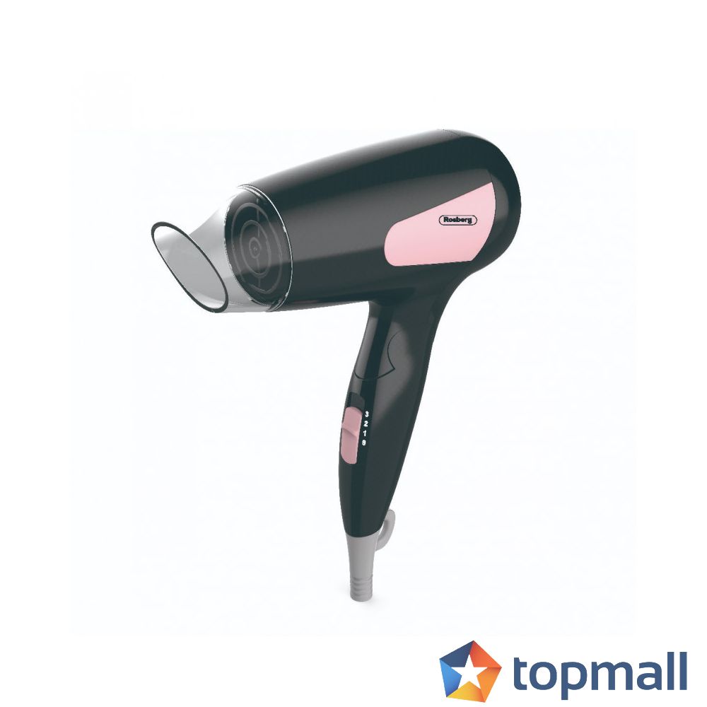 Сешоар туристически Rosberg R51100N, 1200W, Сгъваема дръжка, 3 температурни настройки, Черен/розов, (35944186)