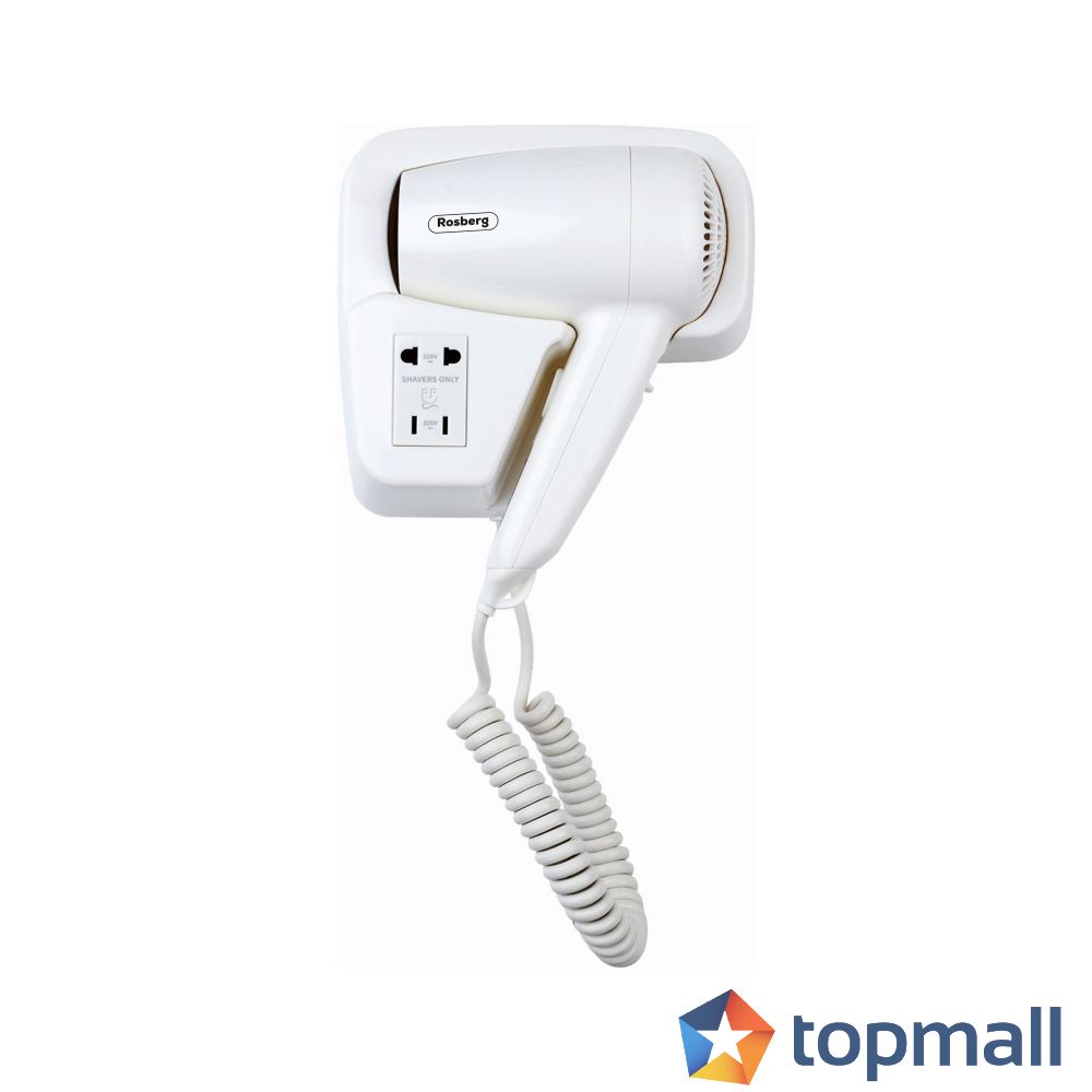 Стенен сешоар за хотели Rosberg R51100HT с мощност 1300W. Изход за самобръсначки.