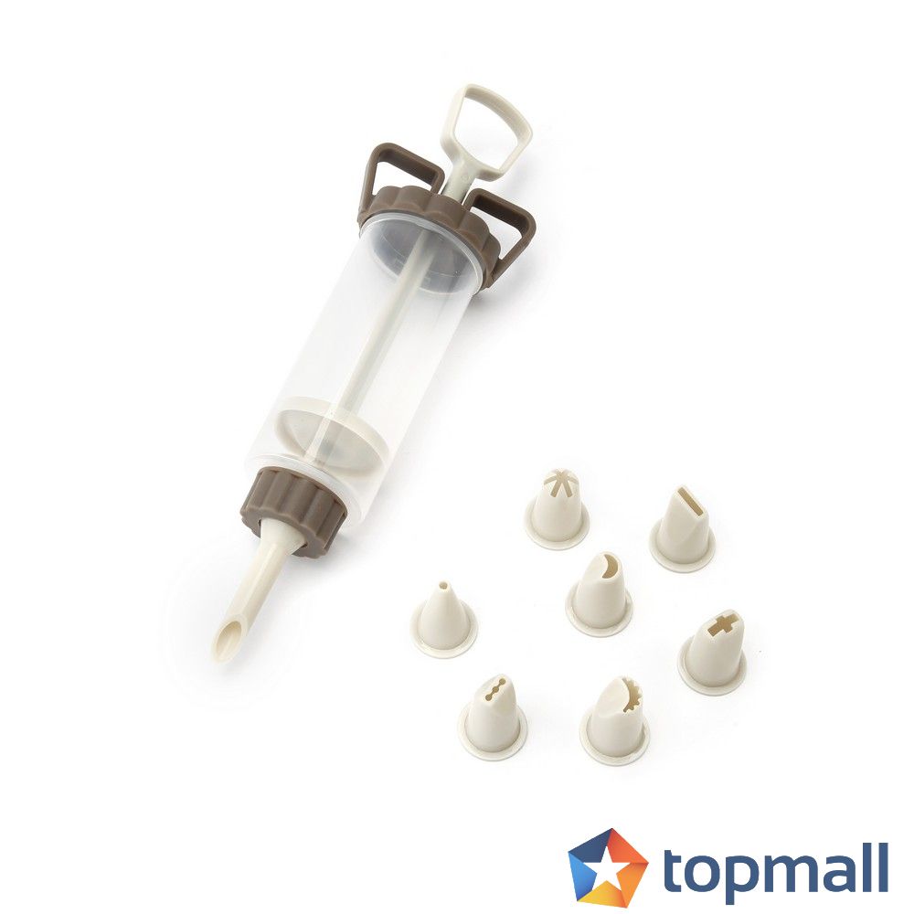 Удобен уред за оформяне на украси върху всякакъв вид бисквитки, торти и други сладкиши 8 бр пластмасови накрайника Подходящ за съдомиялна машина