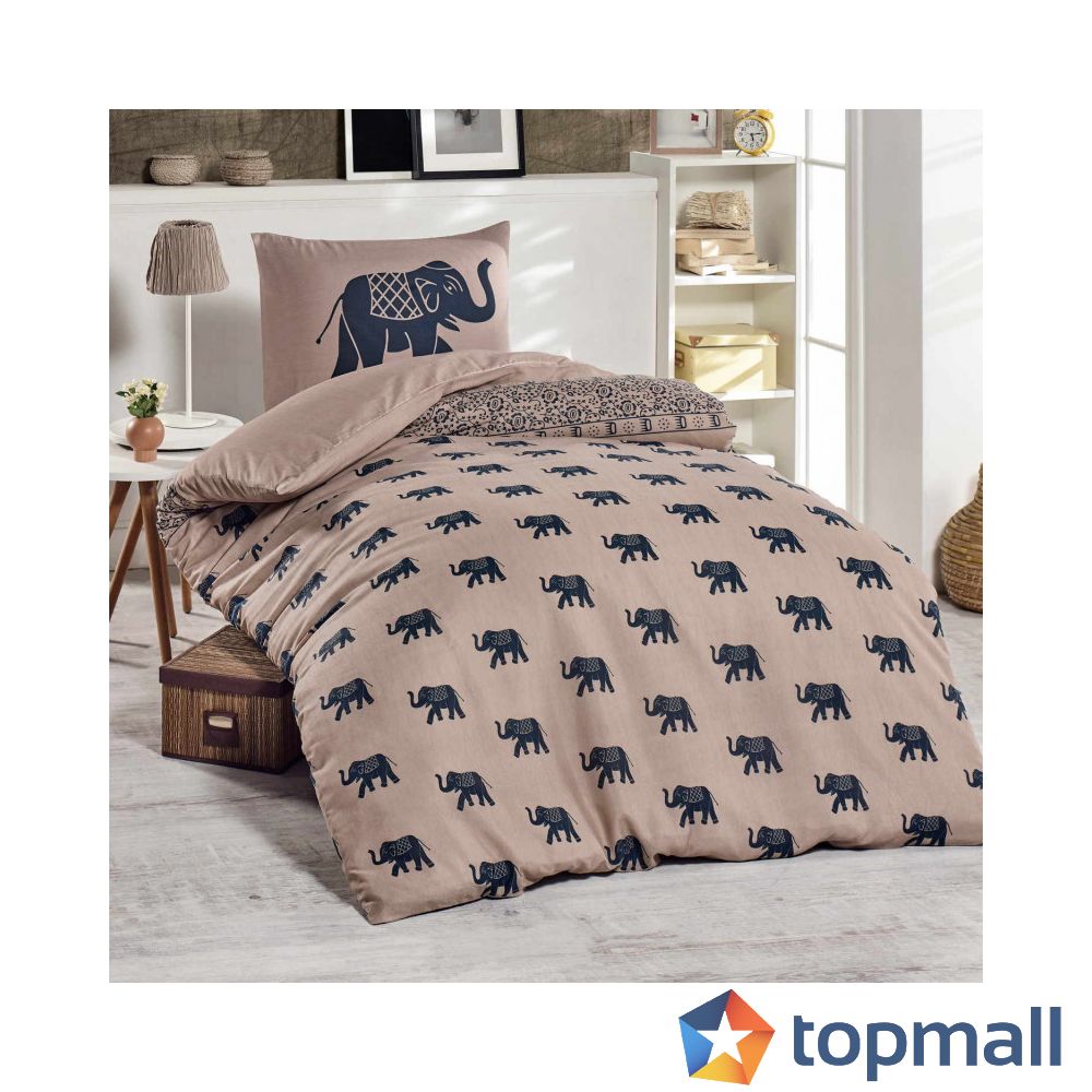 Спален комплект EnLora Home 162ELR9371, 2 части, 65% памук 35% полиестер, Плик 140х200, 1 Калъфка 50х70 см, Кафяв/черен, (162ELR9371)
