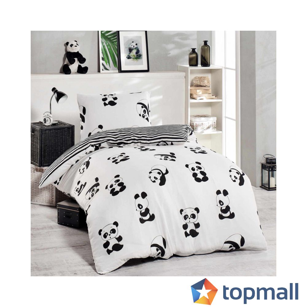 Спален комплект EnLora Home 162ELR9374, 2 части, 65% памук 35% полиестер, , Плик 140х200, 1 Калъфка 50х70 см, Бял/черен, (162ELR9374)
