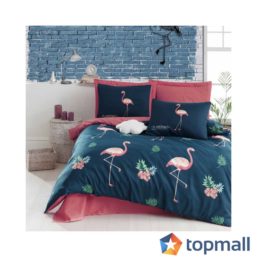Спален комплект Eponj Home 143EPJ1902, 65% памук - 35% полиестер, 4 части, Плик 200х220 см, Чаршаф 220х240 см, 2 Калъфки 50x70 см, Тъмносин/розов, (143EPJ1902)