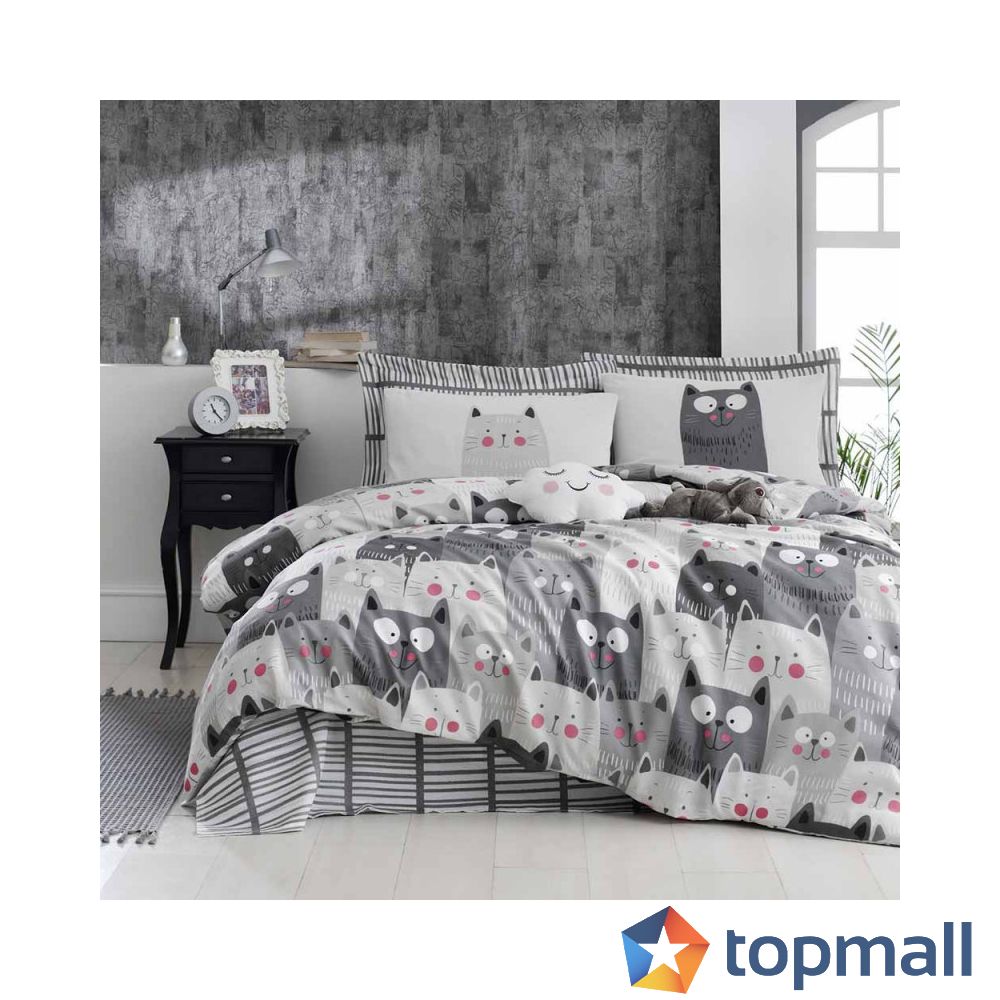 Спален комплект Duvarda Kediler - Grey - Материал: 65% памук - 35% полиестер - 1 бр. Плик 200х220 см. - 1 бр. Долен чаршаф 220х240 см. - 2 бр. Калъфки 50х70 см. Инструкции за почистване - Пране при (°C): 30 - Гладене при (°C): 110 - Използвай белина: не - Може да се суши в сушилня: не - Професионално почистване: да - Свиване на тъкани: не