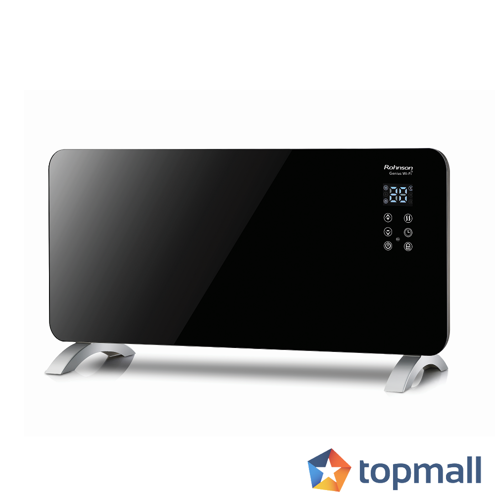 Стъклен конвектор Rohnson R-028 Genius Wi Fi с възможност за монтиране на стена или на под.